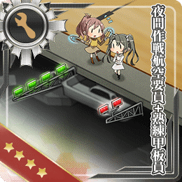 夜間艦戦+夜間作戦航空要員で夜間砲撃を行う。烈風などの艦戦が混じっても可(夜戦は艦戦のみでもかなりのダメージが出る)