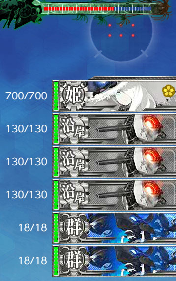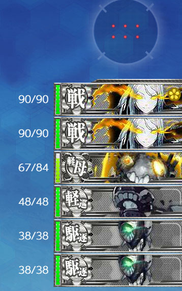 | 戦艦 | 航巡 | 駆逐艦 | 駆逐艦 | 駆逐艦 | 空母 |
