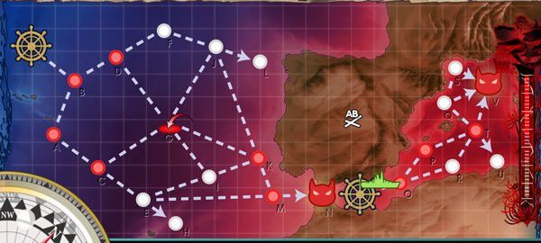 旗艦指定はなし。戦艦、空母、潜水艦、雷巡が入れられない。航戦は入れられるが、おおむね羅針盤は荒れることあり