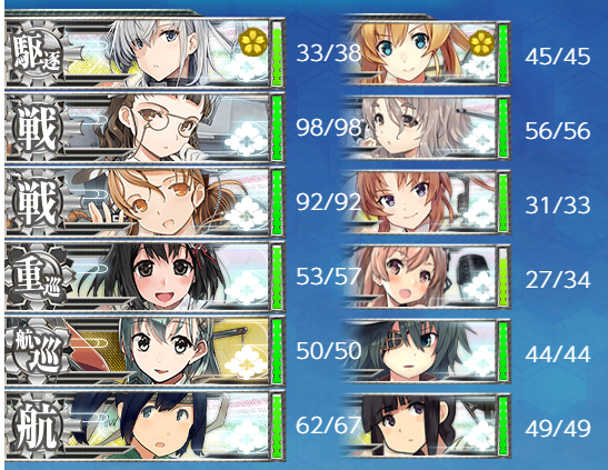 編成さらしておきます。丙作戦は雷巡2つもいらなかったかもしれない