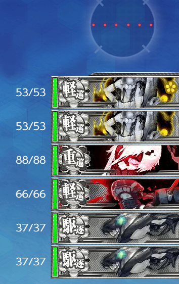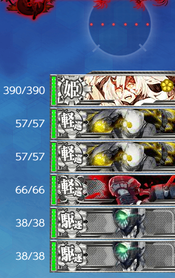 重巡棲姫、軽巡ヘ級、軽巡ヘ級、軽巡ツ級、駆逐ロ級後期、駆逐ロ級後期