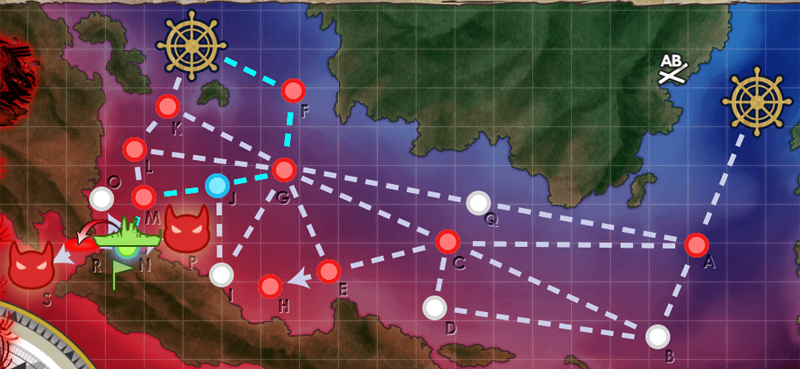 | G | 通常艦隊でJ (戦艦+軽空母+あきつ丸)4隻以上でK 明石改 または 秋津洲改を含む場合 明石改 または 秋津洲改を含まない場合 |