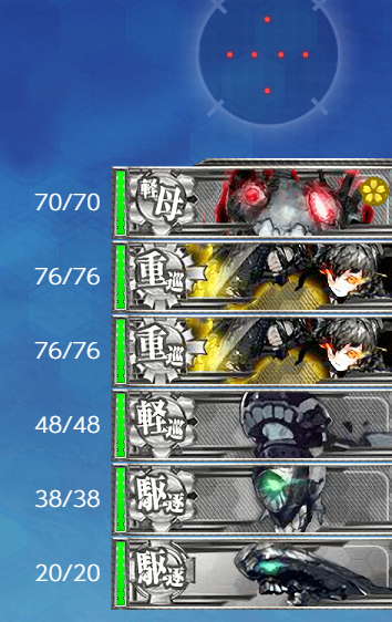 | 軽巡(阿武隈改二) | 駆逐艦 | 駆逐艦 | 重巡 | 駆逐艦 | 駆逐艦 |