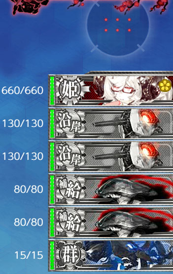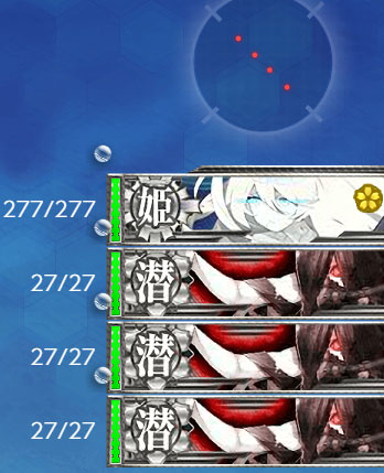 Dマス 潜水艦姫がいます。基地航空隊の対潜攻撃で倒せます。打ち漏らしたときのために駆逐艦を1隻か2隻対潜装備にしておきます。