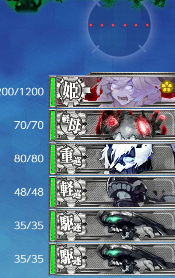 E | 高速以上統一でH 正規空母3隻以上でF 戦艦級4隻以上でF (戦艦級+正規空母)5隻以上でF |
