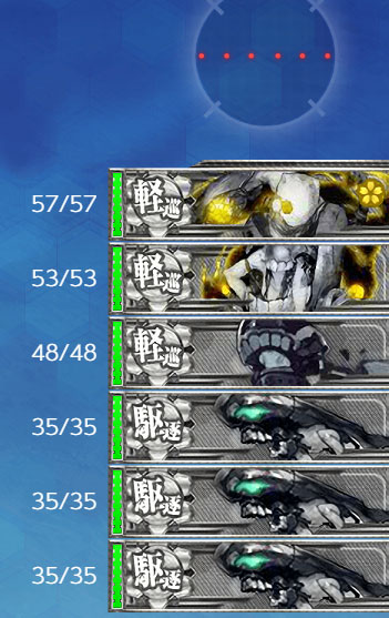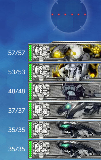 いろいろ考えて最終的にこうなりました。ルートは最短です。先が見えないため最低限の空母で出撃。この海域は空母2+軽空母2で羅針盤を操作します。戦艦+空母系が5以下になるようにします。最短は高速統一です