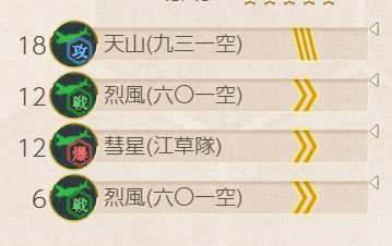 爆雷 | 爆雷 | 艦攻 | 艦攻 | 艦攻 | 艦攻 |