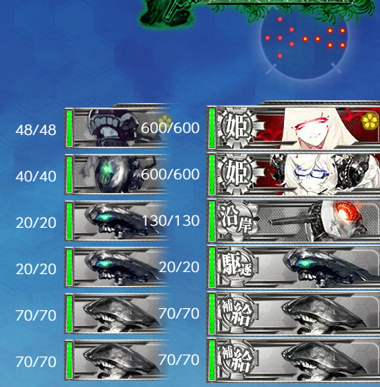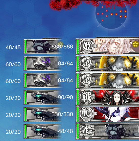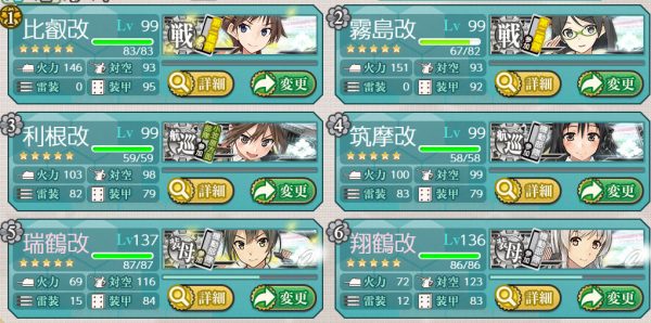 空母や水母入れると羅針盤が荒れるため空母なし