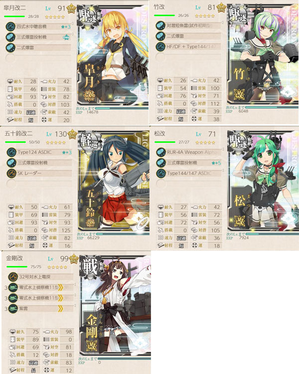 ※夜戦で集積狙うため皐月改二の編成順は下のほうがいいですね