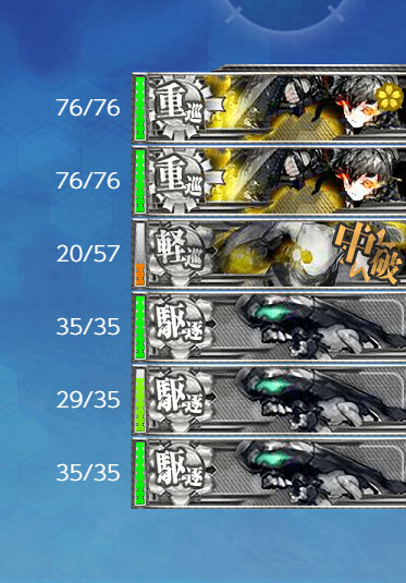 | 駆逐艦 | 駆逐艦 | 戦艦 | 重巡 | 重巡 | 重巡 |