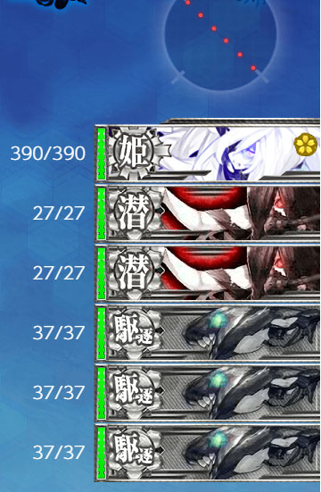 | 甲作戦 | 松型駆逐艦「桃」、水雷戦隊 熟練見張員★+4、給糧艦「間宮」x2、給糧艦「伊良湖」x2、潜水艦補給物資x8、特注家具職人 |