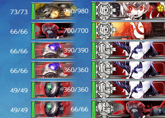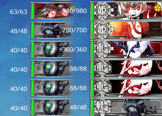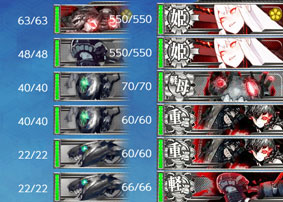 | Uマス | 勝利A以上2回 | 空母機動部隊(空母を入れる) Rに潜水艦姫がいるので対潜装備少し | 「第二艦隊」 |
