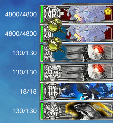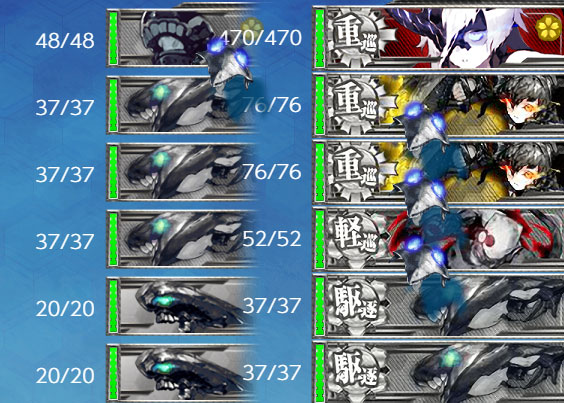 ゲージ1ボス | 重巡1航巡1駆逐4 重巡1航巡1軽巡1駆逐3 |