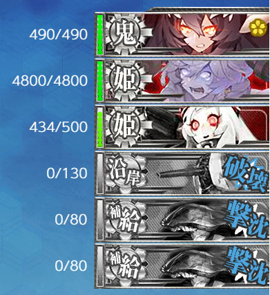 陸上型。とりあえず那珂ちゃんと弱い駆逐艦にWG42装備して夜戦しましたが2400くらい削って終了、基地航空隊集中しても安定撃破は難しそうです。対地装備できる駆逐艦にカミ車、大発戦車、WG42を装備させればいけるかな