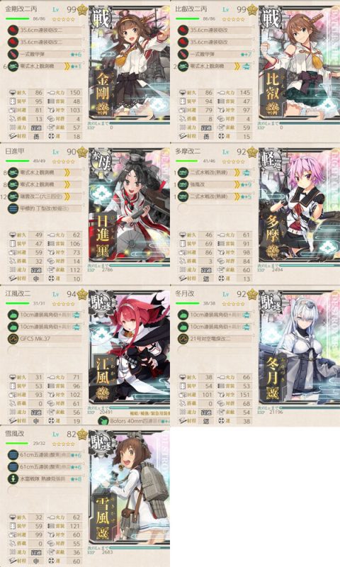 金剛改ニ丙、比叡改ニ丙、水母、軽巡1、駆逐艦4