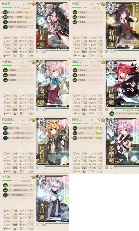 阿武隈はサブ艦 日進使ってしまったが温存推奨です。ちとちよでいいかも