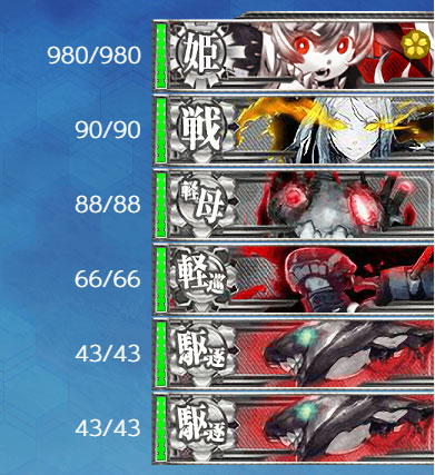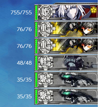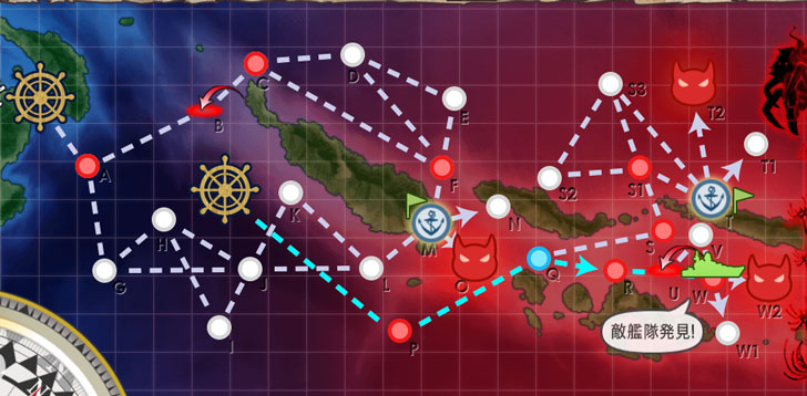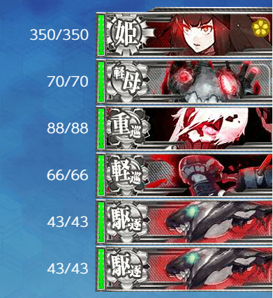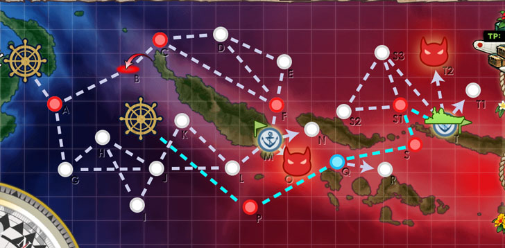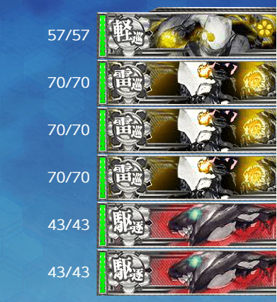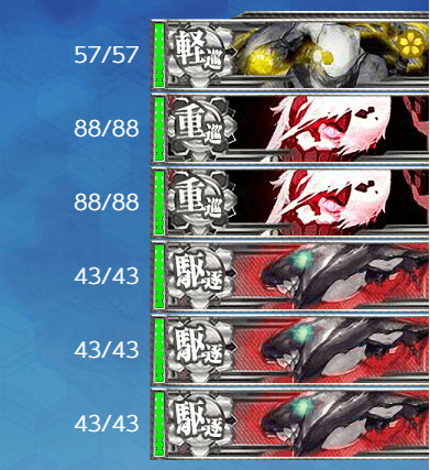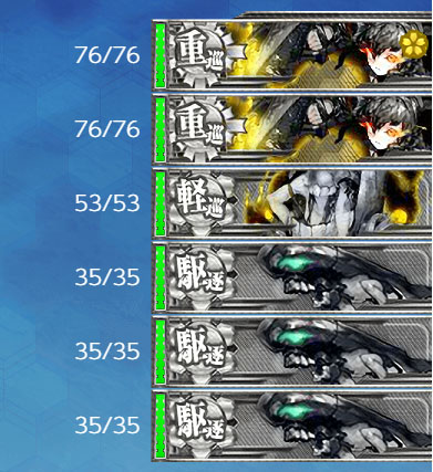 S1 | 戦艦級0+水母1以上+軽巡1以上+高速統一でT 戦艦級0+(水母+軽巡)1以上+駆逐5以上+高速統一でT 戦艦級0でそれ以外はS3 戦艦級1+水母1以上+軽巡1以上+駆逐3以上+高速統一でT 戦艦級1でそれ以外はS3 戦艦級2以上+駆逐2以上+高速統一でS3 戦艦級2以上でそれ以外はS2 |