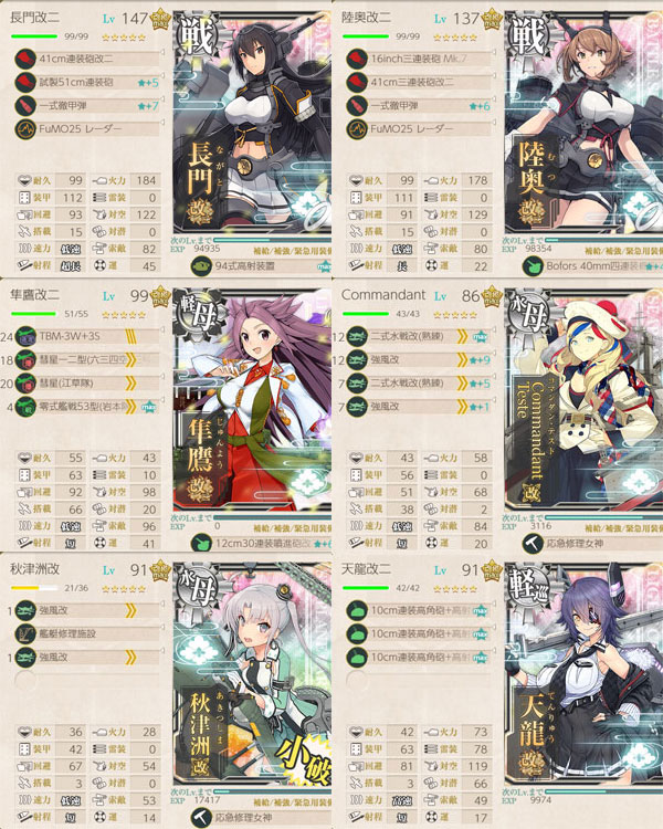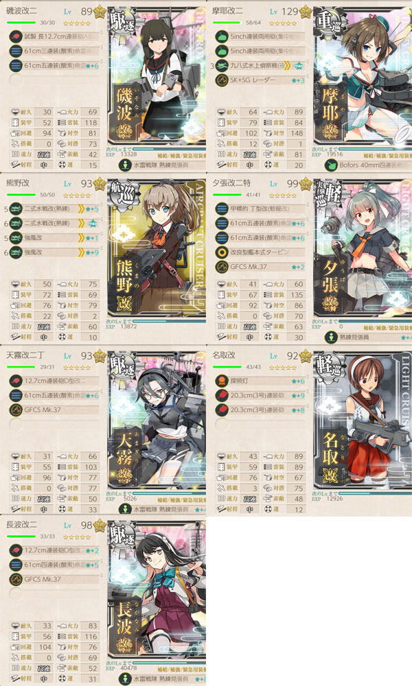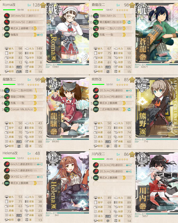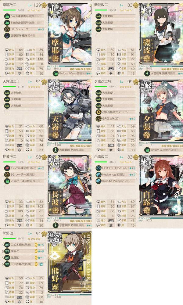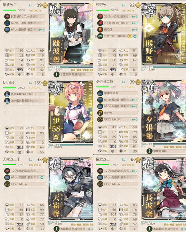 同じく道中潜水艦と空襲しかないため対潜装備と戦闘機、対空カットイン装備