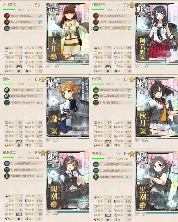 正規空母は拾ったレベル1の艦を使いました。駆逐艦は戦闘では使えそうのない適当な弱い艦
