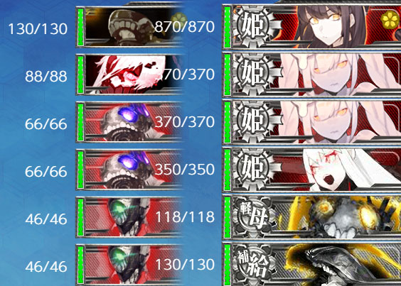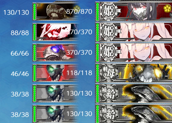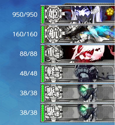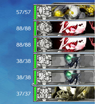道中 潜水艦→空襲→子鬼群6隻→空襲→通常戦(潜水艦混じり)→輸送ボス