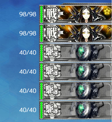 戦艦1隻(航戦可)+軽巡1隻+重巡系1隻+駆逐艦4隻