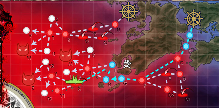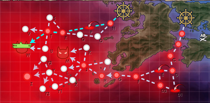 Y | (正空+装空)1以上でY2 軽空2以上でY2 戦艦級3以上でY2 重巡級3以上でY2 (正空+装空)0+軽空1以下+戦艦級2以下+重巡級2以下+索敵値一定上はボス |