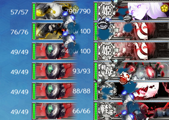 道中 潜水艦→空襲→砲撃戦→砲撃戦→ボス