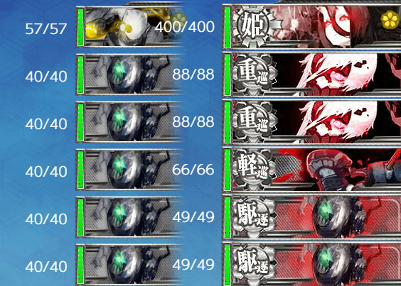 X | 空母系2以上でY1 戦艦級3以上でY1 戦艦級2以上かつ低速艦隊でY1 甲作戦のみ(駆逐+海防)5以下でY1 それ以外はY |