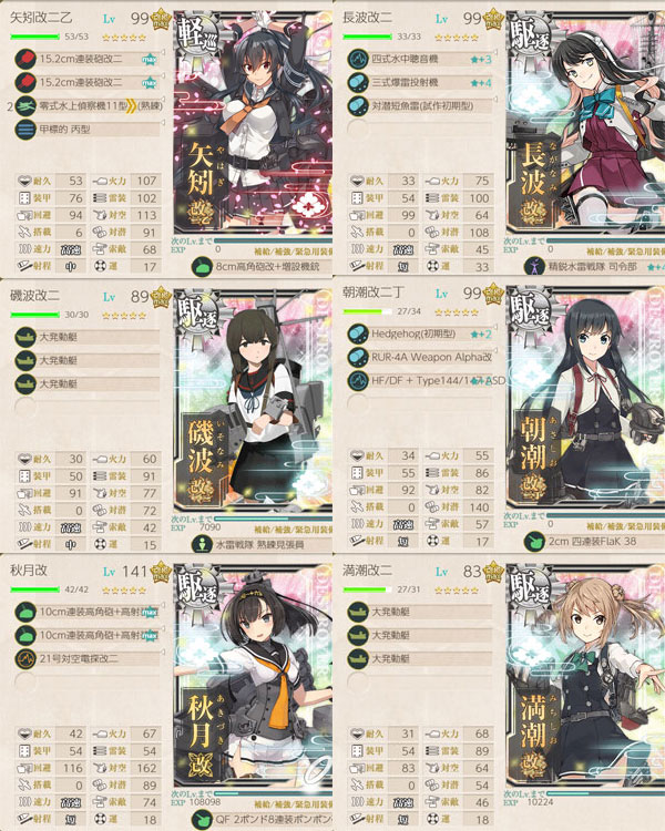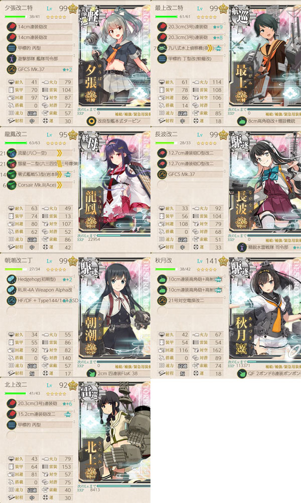 乙作戦 | Maryland、勲章x2、改修資材x8、戦闘詳報x1、5inch連装砲(副砲配置) 集中配備★+1、SG レーダー(後期型) |