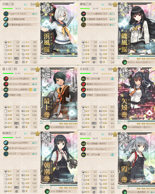 道中:対潜>空襲>砲撃>空襲>砲撃>ボス
