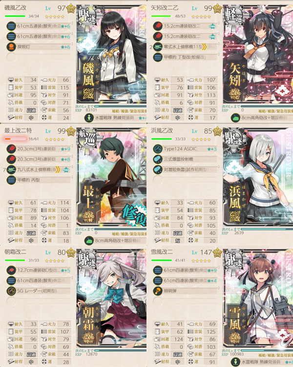 道中:空襲>対潜>空襲>空襲>砲撃>砲撃>ボス