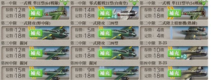基地行動半径6 陸攻3+局戦1を2部隊ボス集中(削りは道中に送っても可)