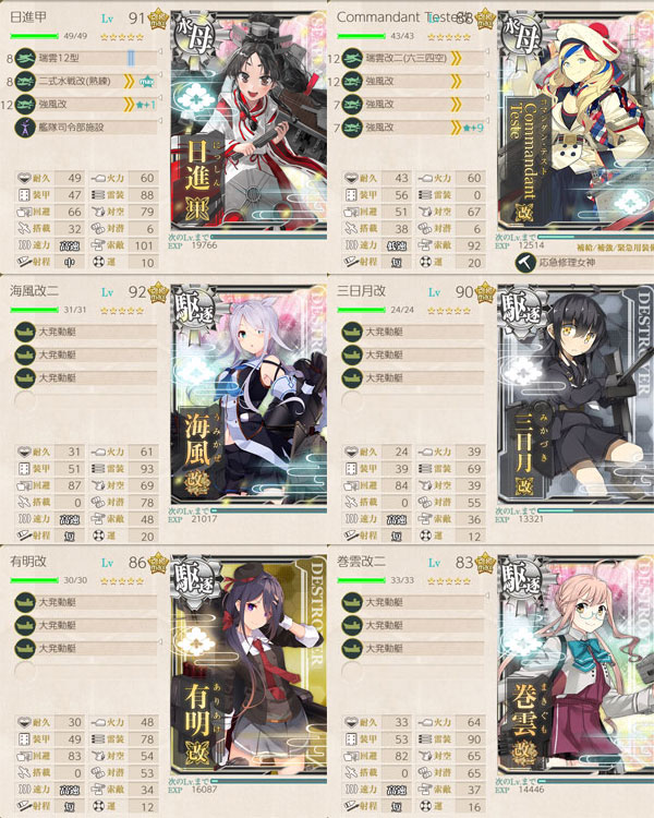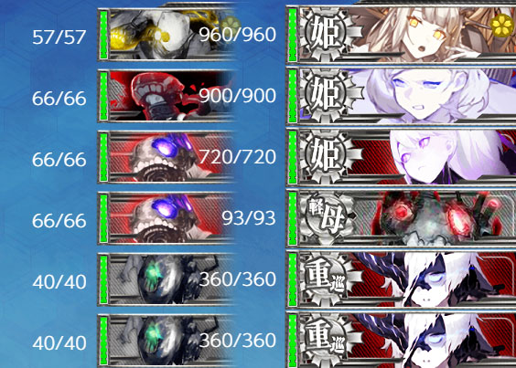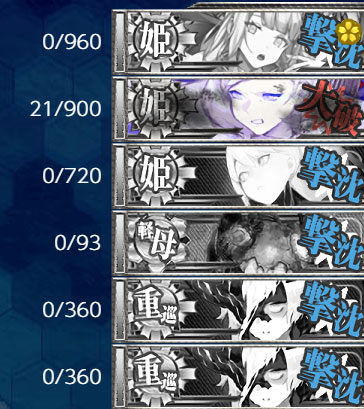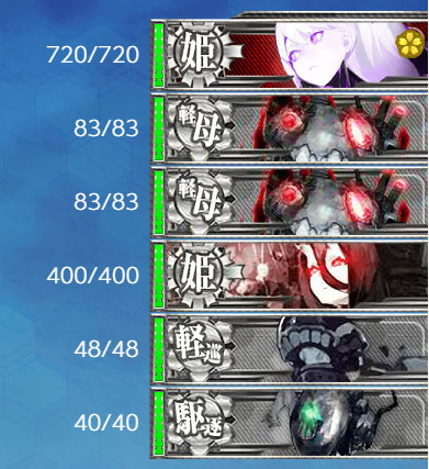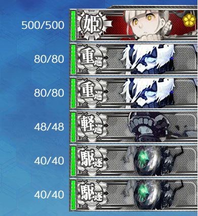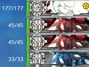 姫を残すと厄介なので対潜装備の駆逐艦を1隻編成、道中支援は対潜で対応しました