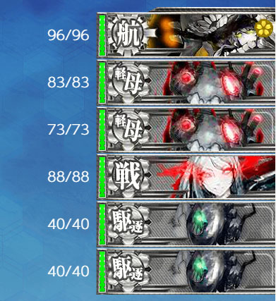正規空母1隻+軽巡1隻+駆逐艦5隻