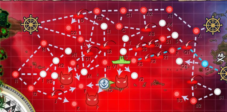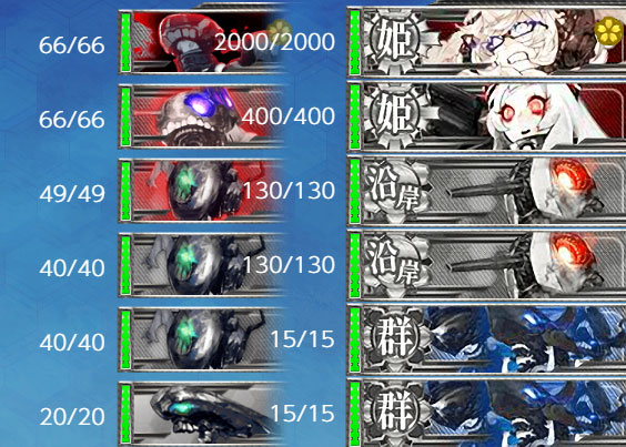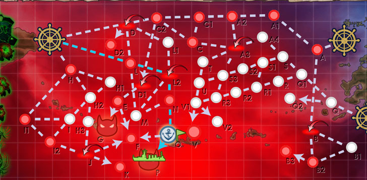2(左スタート) | ボスマス開放前はH 機動部隊はH 戦艦級1以上+低速含むとD それ以外はL |