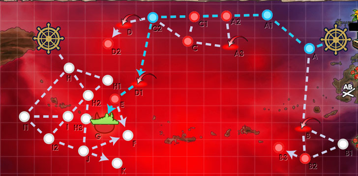 ルート A2(対潜)C1(水上)D1(空襲)E(水上)ボス