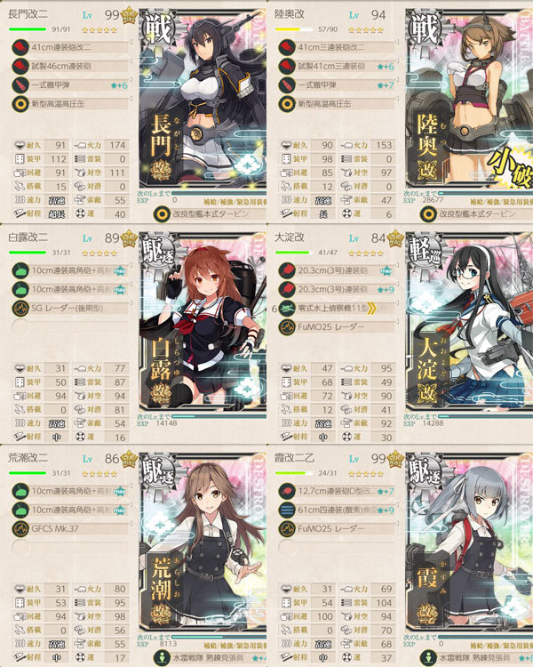 装備を砲撃戦装備に変更。編成はJマスと同じ