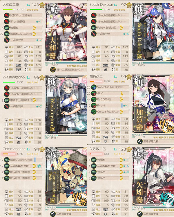 大和型でも駆逐艦4隻入れれば低速でも最短ルート行けます。問題は随伴の戦艦。武蔵改ニではなく高倍率の特攻があるアメリカ艦がいいと思います。