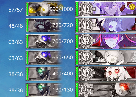 道中の空母夏姫2隻のマスが制空値が異常に高く航空優勢が取れません。お祈りするしか無いようです