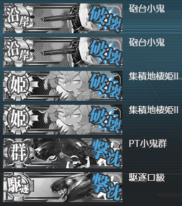 対潜>空襲>砲撃>砲撃>空襲>砲撃(陸上型)