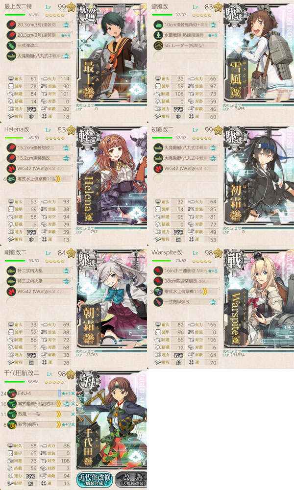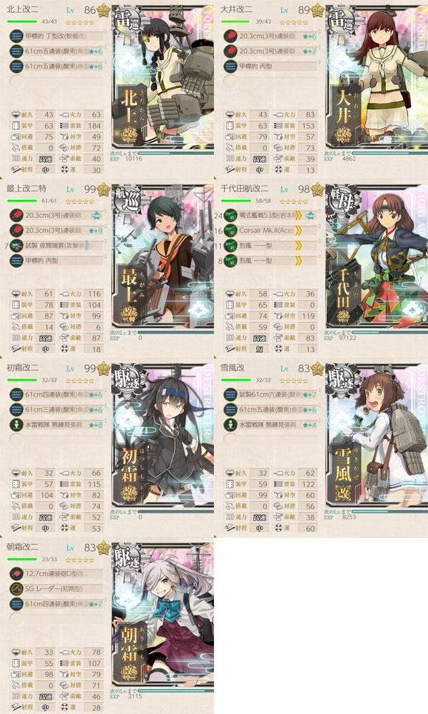 ここらへんの艦と雷巡や最上改二特のサブなどで編成しています