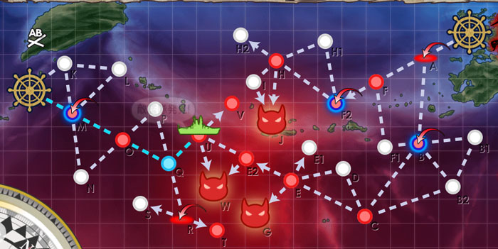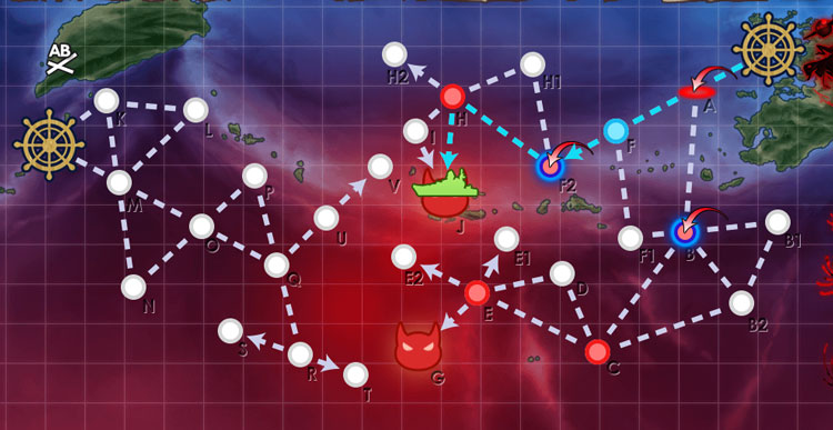 A(輪形陣)>B(警戒陣)>C(警戒陣)>E(警戒陣)>ボス(警戒陣or単縦陣)