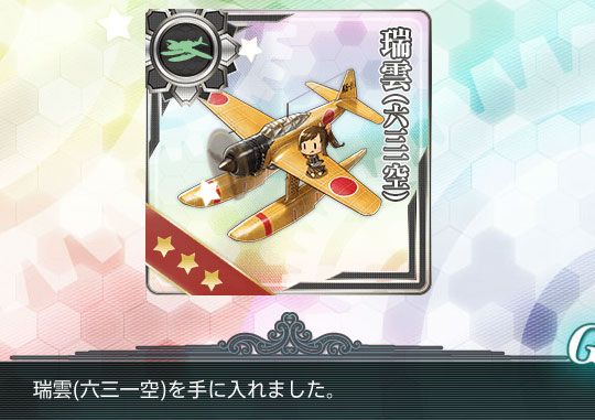 乙クリア報酬 瑞雲(631空)、伊良湖2、補強増設1、桐箪笥(潜水空母)