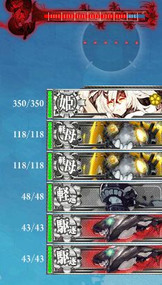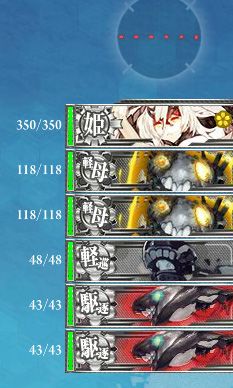 その後夜戦で照明弾発動し大潮の魚雷カットインで80でボス大破、ビス子の連続砲撃(10と145)でゲージ破壊できました。